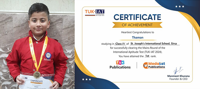 | Tanjot Singh | VII | Sacred Heart Universal School, Bilaspur, Moga | Rank 3 | Bronze |